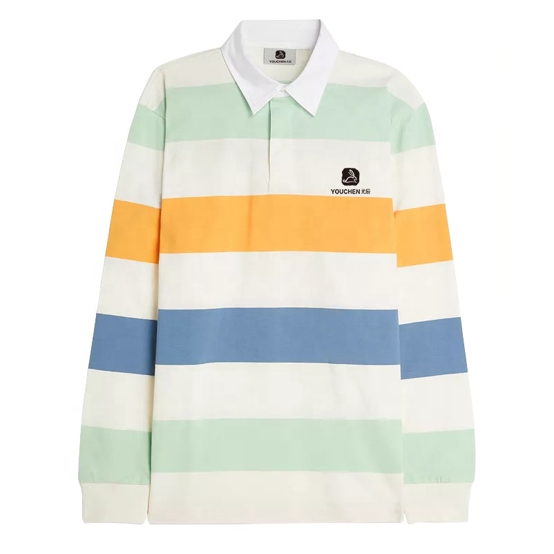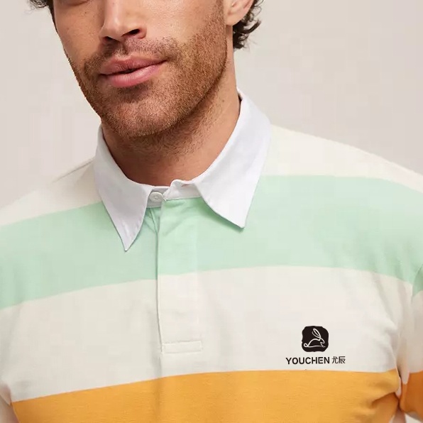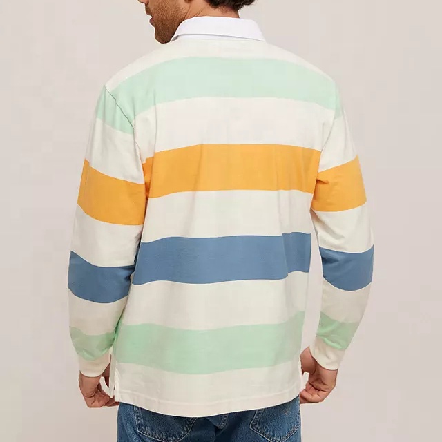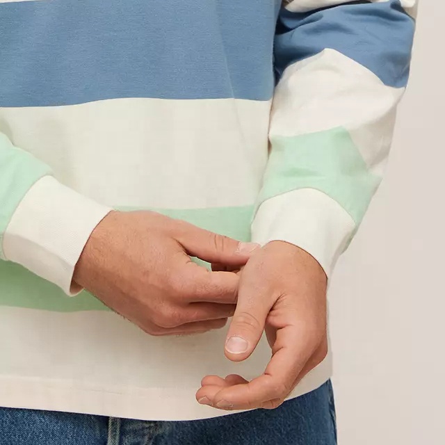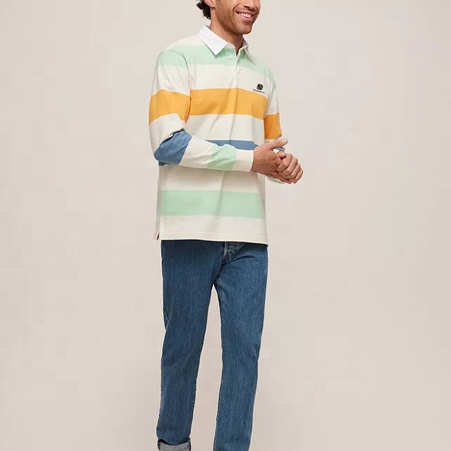 | Product Name | Men 100% Cotton Striped Long Sleeves Rugby Polo Shirt for Men Custom Embroidered Logo | ||||||